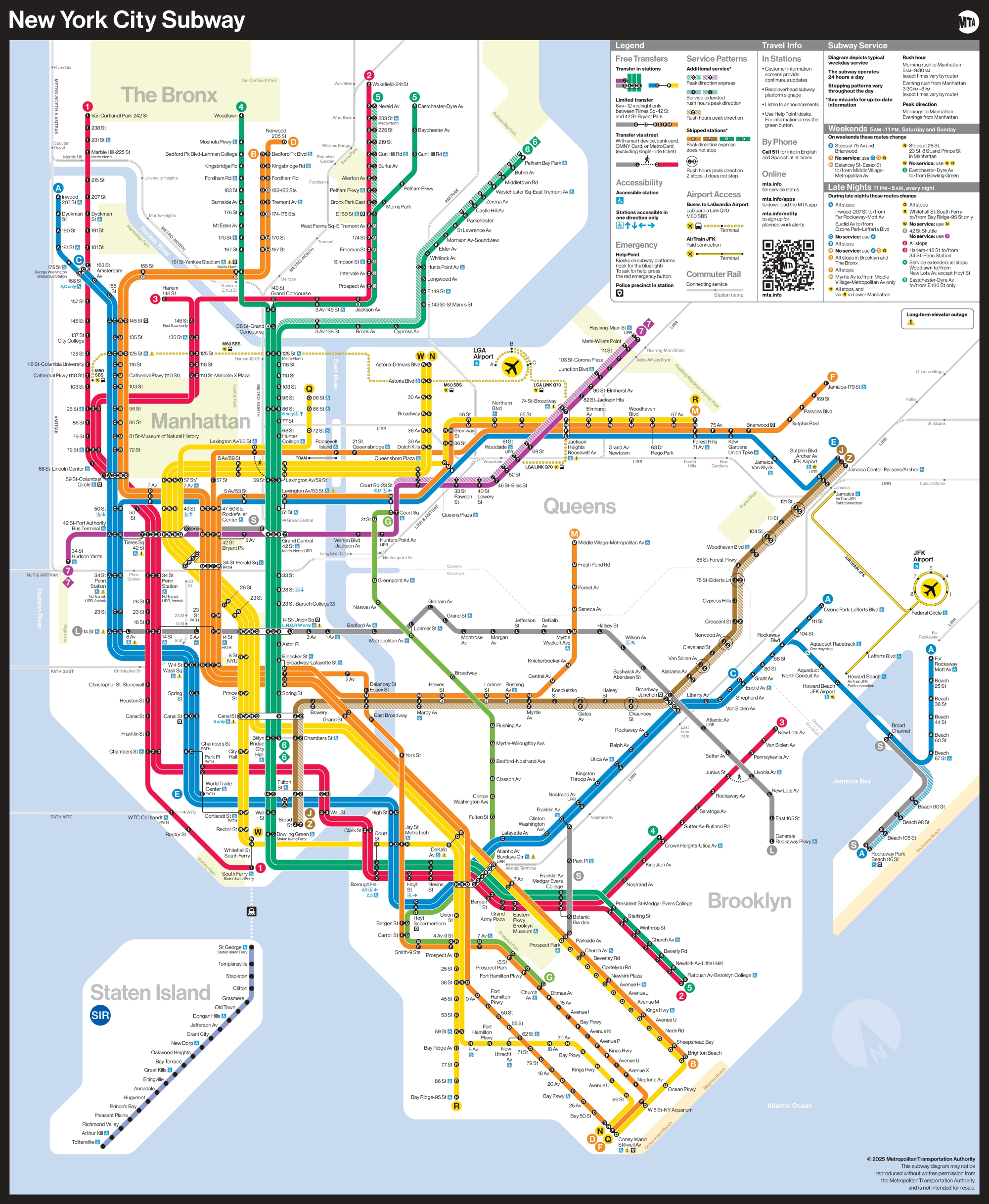 地下鉄の路線図マップは、MTA(ニューヨーク州都市交通局)”Maps” に最新版PDFが掲載されています。旅行前にダウンロード/印刷しておくことをおすすめします。